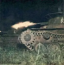 ![]() Type 97 Chi-Ha tanks of the IJA 1st Tank Division during a night training exercise, 1943 | |