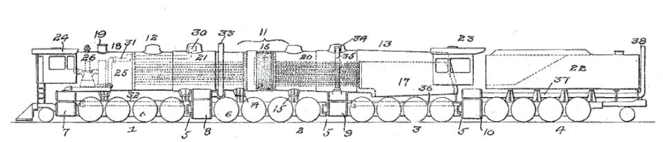 - A jointed boiler with a flexible coupling (16) allowing the boiler casing to flex laterally on track curves. Such an accordion joint was already in use on a 2-6-6-2 locomotive of the AT&SF.[5]