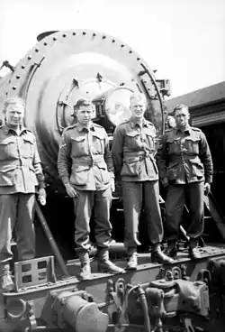 In mid-1940, amid the tide of German successes in Europe, there was an influx of volunteers for the 2nd AIF. As a result, the Australian government decided to raise a third volunteer division for overseas service, named the 8th Division.[7][8] Established around three infantry brigades—the 22nd, 23rd and 27th—the division was supported by corps troops including engineers, cavalry, artillery, pioneers and a machine gun battalion for direct fire support.[8] Within this formation, the 2/4th Machine Gun Battalion came into being on 25 November 1940, when Lieutenant Colonel Michael Anketell, a First World War veteran who had commanded a Militia infantry battalion before the war, established his headquarters at Northam Camp, near Perth, Western Australia. While the rest of the 8th Division had drawn its personnel mainly from the more populous eastern states of New South Wales and Victoria, the decision was made to select personnel for the 2/4th only from those who were already enlisted and conducting training in the west. While potentially parochial, it was a primarily a pragmatic decision to reduce the time it would take to concentrate the unit and complete its training.[9][10]