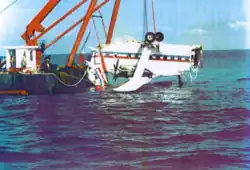 The aircraft plunged into the sea 5 kilometres (3.1 mi; 2.7 nmi) off of Marsa Brega. The front part of the aircraft was totally destroyed. The tail of the aircraft detached from the fuselage on impact, in a 10° nose up position. As the aircraft began to sink, water started to fill into the cabin. One British survivor escaped after kicking out an aircraft window as the aircraft began to sink.[6]