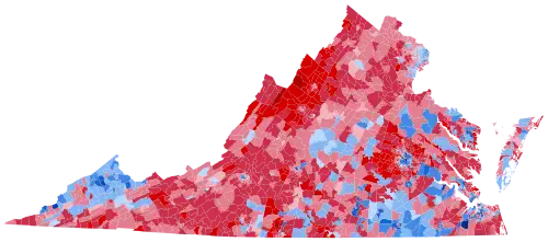 Virginia had not gone Democratic in a presidential contest since 1964 and was won by Texas governor George W. Bush with a margin of victory of 8.03%.[2]