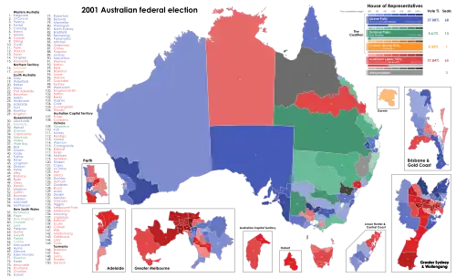 ![]() Results by division for the House of Representatives, shaded by winning party's margin of victory. | |||||||||||||||||||||||||||||||||||||||||||