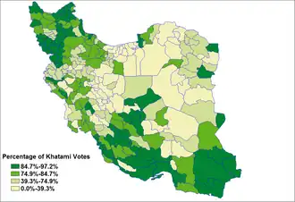 ![]() Khatami's vote share by county | ||||||||||||||||||||