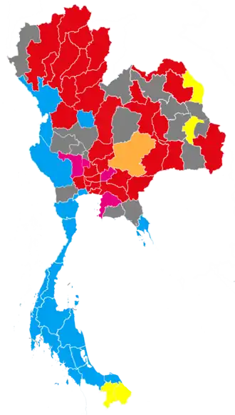 | Thai Rak Thai | 11,565,103 | 39.91 | 48 | 9,616,204 | 35.68 | 200 | 248 | |