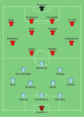 - ^ BBC SPORT | WORLD CUP | Argentina v England | England's sweet revenge http://news.bbc.co.uk/sport3/worldcup2002/hi/matches_wallchart/argentina_v_england/default.stm
