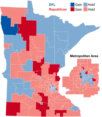 - ^ "Party Control of the Minnesota House of Representatives, 1951-present". Minnesota Legislative Reference Library. Retrieved December 9, 2013.