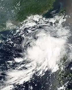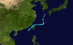 While passing the south of Taiwan, it dropped heavy rainfall peaking at 320 mm (13 in) in Pingtung County.[29] Rainfall in Japan peaked at 123 mm (4.8 in) at a station in Kagoshima Prefecture.[30] The threat of the storm prompted school closures and 20 airline flight cancellations.[31] Noguri injured one person, damaged one house, and caused about $4 million (¥504 million JPY) in agricultural damage.[nb 7][32]