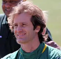 Montoya was disappointed to finish fourth, saying "I was expecting more from this race. There was simply nothing more there."[65] Button called his fifth-place result "the best race of my F1 career", saying, "I got to fifth position not by people falling out but because we were quick enough. I pushed every lap to be as consistent as possible and to be as quick as possible – and it worked."[76] Renault team principal Flavio Briatore told Button, "Great drive".[77] Coulthard said McLaren struggled more than he had expected and felt he could extract more from his car.[65] He said about being lapped by Michael Schumacher "I can't remember the last time I was lapped. I wished I had a lasso to throw onto his wing."[65] Barrichello complained that Irvine delayed him for several corners while he was lapping him and gesticulated to him, adding "He's getting old."[72][74] Irvine retorted, "I may be older than Rubens but I'll never be as ugly."[74] He added Barrichello was being overly emotional and that he moved over for him.[65]