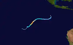 | Peak intensity | 155 km/h (100 mph) (10-min); 950 hPa (mbar) |