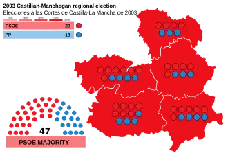 - ^ a b "VI Legislature. Regional election, 25 May 2003". www.cortesclm.es (in Spanish). Cortes of Castilla–La Mancha. Retrieved 29 September 2017.