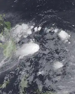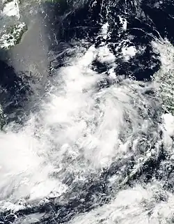 An area of convection formed on May 16 to the southwest of Palau, located within an area of weak wind shear. The next day, the JMA and the JTWC both classified the system as a tropical depression. The convection was disorganized in association with multiple circulation centers, although it gradually organized. Moving westward initially, the depression turned more to the north into an area of increasing wind shear. On May 19, the JTWC upgraded the system to Tropical Storm 03W,[1] and on the same day, PAGASA classified it as Tropical Depression Batibot.[39] Soon after, the convection decreased from the center, and by May 20, all warning agencies had discontinued advisories.[1]