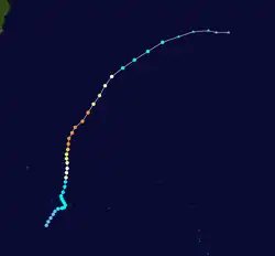 | Peak intensity | 150 km/h (90 mph) (10-min); 955 hPa (mbar) |