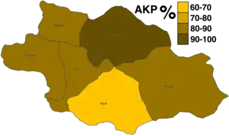 * The number of valid votes recorded for Aydınlar is recorded as higher than the number of votes cast (1,460). The actual results in this district are therefore disputed.