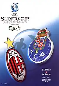 The 2003 UEFA Super Cup was played on 29 August 2003 between Milan of Italy and Porto of Portugal. Milan qualified by defeating Juventus in the 2003 UEFA Champions League Final, while Porto qualified by beating Celtic in the 2003 UEFA Cup Final. Milan won the match 1–0.[4] After the match, defeated Porto manager José Mourinho said, "We leave here convinced we can go into the UEFA Champions League with the hope and certainty we can compete with any team."[5] They finished the season as 2003–04 UEFA Champions League winners.[6]