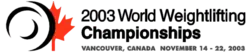 The 2003 World Weightlifting Championships were held in Vancouver, British Columbia, Canada from November 14 to November 22, 2003.