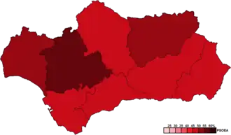 ![]() Constituency results map for the Parliament of Andalusia | |||||||||||||||||||||||||||||||||||||||||||||||||||||||||||||||||||||||||||||||||||||||||