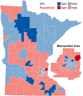 The Republican Party of Minnesota won a majority of seats, remaining the majority party, followed by the Minnesota Democratic–Farmer–Labor Party (DFL). The new Legislature convened on January 4, 2005.