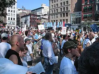 Protest activity included marches, rallies, performances, demonstrations, exhibits, and acts of civil disobedience in New York City to protest the 2004 Republican National Convention and the nomination of President George W. Bush for the 2004 U.S. presidential election, as well as a much smaller number of people who marched to support Bush at the convention.