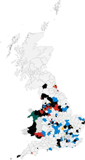 ![]() Colours denote council control following elections, as shown in the main table of results. | |||||||||||||||||||||||||||||||||||||||||||||