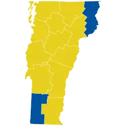Despite having ended his campaign for the presidency two weeks prior,[7] Dean won a majority of votes cast in the primary and received nine pledged delegates, topping the popular vote in nearly every county. John Kerry, who by this point had cemented his status as the frontunner for the nomination, finished second and won six delegates, placing first in the counties of Essex and Bennington. Although absent from the ballot, John Edwards received over six percent of the vote through write-ins.