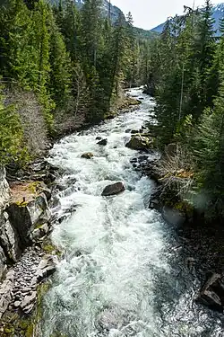 The Cheakamus River derailment occurred on August 5, 2005, when nine cars that were from a Canadian National Railway freight train derailed and crashed into the Cheakamus River in British Columbia. The cars contained approximately 40,000 litres of caustic soda (sodium hydroxide), which entered the river, killing more than 500,000 fish from 10 different species, including chinook salmon, coho salmon, pink salmon, and rainbow trout, both freshwater and ocean-dwelling.[1] Juvenile rainbow trout were the most affected at a mortality rate of 90% and it was also estimated that the adult chinook salmon mortality rate reached 50%.[2]