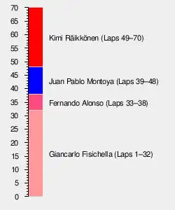| 1 | 9 | McLaren-Mercedes | M | 70 | 1:32:09.290 | 7 | 10 | |
