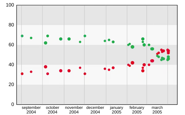 Opinion polling had shown the "Yes" and "No" campaigns in the lead at various times, but in the weeks leading up the referendum the "No" campaign consistently held the lead. This led many, even some on the "Yes" side, to predict openly that France would reject the Constitution.[6]