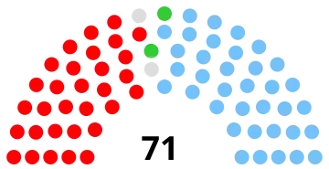 All 71 seats in the House of Representatives 36 seats needed for a majority | |||||||||||||||||||||||||||||