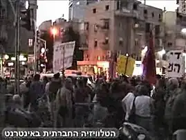 The protest began on August 21 after a dozen reservists who served on the southern Lebanese military front, situated their demonstration at a park besides the government building, calling for the government's resignation.[2] The protest grew in momentum over several days, and as of August 25 it consisted of several hundred demonstrators,[3] including the influential Movement for Quality Government. On August 24, several parents of Israel Defense Forces soldiers killed in the conflict joined the march.[4] Over 2,000 people participated in the march on August 25.[5]