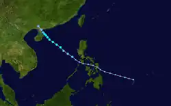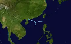Heavy rainfall in Taiwan caused flooding and four minor injuries. Rain also fell heavily in the northern Philippines.[25] The storm has also killed at least 32 people in China, while another 60 people are missing. Agricultural losses in Taiwan amounted to NT$73 million (US$2.2 million).[26] Total damages from the storm amounted to $450 million.