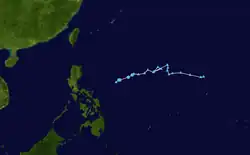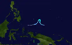 On March 4, a tropical depression formed out of a wave close to the equator southeast of Palau. The JTWC upgraded it to Tropical Storm 01W at 3 p.m. UTC the same day. The JTWC downgraded it back to a depression on March 5 due to shear, and it never regained tropical storm strength before dissipating on March 7.[14]