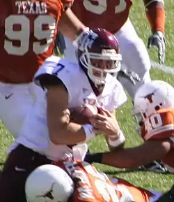 170. ^ a b c d Halliburton, Suzanne (November 15, 2007). "Colt McCoy eager to show Aggies his toughness". Austin American-Statesman. Retrieved November 18, 2007.