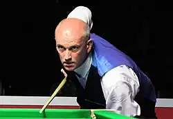 The 16 first-round matches were between players ranked 17–32 and those who had made it through the qualifying stage from 4 to 5 December.[5][6] Ryan Day came from 3–0 down to beat Liu Song 9–5 with a match-winning break of 130.[9] 2004 runner up David Gray was helped by breaks of 131, 81 and 68 to defeat Pinches 9–2,[10] while Stuart Bingham emerged a 9–8 winner over Rory McLeod from 7–5 and 8–7 down.[11] Mark Selby defeated Parrott 9–1 with breaks of 110, 104, 59 and 57 to lead 7–1 entering the evening session and Selby took less than half an hour in the second to give Parrott his biggest career defeat since his 18–3 loss to Davis in the final of the 1989 World Snooker Championship.[12][13] Of the other first day matches Mark King beat Adrian Gunnell 9–4,[11] and Joe Perry led Judge 7–1 overnight with breaks of 125, 93, 75, 66 and 60.[10] Perry took 26 minutes the next day to claim two straight frames and win 9–1.[14] Rod Lawler prevailed 9–7 over Anthony Hamilton in a match lasting more than 81⁄2 hours,[15] and world number 35 Dave Harold defeated Robert Milkins 9–7 with a match-winning break of 102.[16]
