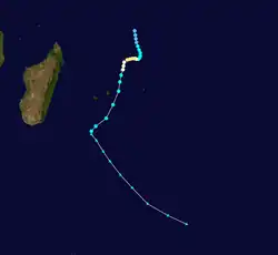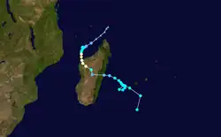 Weakening took place on December 18, and the JTWC issued its final advisory early that day.[43] Météo-France maintained the system as a tropical depression.[44][45] Météo-France issued its final advisory on December 21 as it began to dissipate just east of southeastern Madagascar.[46]