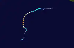 The storm weakened to a tropical depression around 0600 UTC on November 17 as convection continued to dissipate.[22] Despite moving into an area favorable for intensification, Météo-France issued their final advisory on ex-Lee–Ariel on November 18 as it continued to weaken.[23] The remnants of the system persisted for another ten days, completing an erratic counter-clockwise loop before taking a general westward direction.[24]
