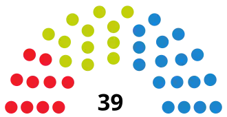 Last election 18 seats, 42.5% 8 seats, 19.2% 13 seats, 30.0%
