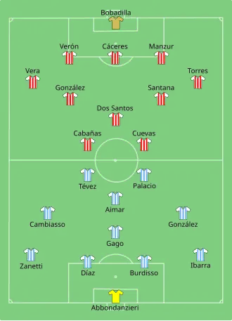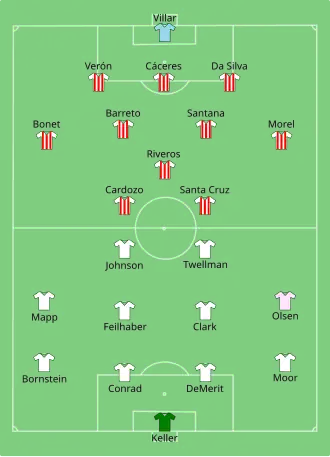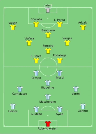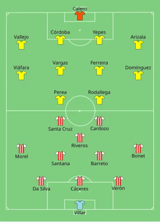 - ^ Hugo Rodallega played as a goalkeeper after Róbinson Zapata was sent off.