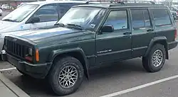 A dark green Jeep Cherokee, registration number L808 RDT,[13] travelling at a speed estimated by a witness as about 30 mph[14] (48 km/h), struck security bollards in a terror ramming attack at the main entrance to Glasgow Airport.[2] The vehicle was reported to have several petrol containers and propane gas canisters on board. One eyewitness said flames issued from beneath the car when it hit the building, while another eyewitness said it appeared the driver was trying to drive through the terminal doors. According to reports, the car was occupied by two "Asian-looking" men.[15] Although the doors were damaged, security bollards outside the entrance stopped the car from entering the terminal, where there were 4,000 people, with the potential for many fatalities.[16]
