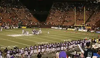 The 2007 Sheraton Hawaii Bowl was a post-season college football bowl game between the Boise State University Broncos from the Western Athletic Conference (WAC) and the East Carolina University Pirates from Conference USA (C-USA). This sixth edition of the Hawaii Bowl, sponsored by Sheraton Hotels and Resorts, was played at Aloha Stadium in Honolulu on December 23, 2007. The game was the final competition of the 2007 football season for each team and resulted in a 41–38 East Carolina victory, even though sportsbooks favored Boise State to win by 10+1⁄2 points.[2] Many experts believed East Carolina to be big underdogs to Boise State,[5][6] which had defeated the Oklahoma Sooners in the 2007 Fiesta Bowl.[7] The 2007 Hawaiʻi Bowl paid $750,000 to each team's conference in exchange for their participation.[8]