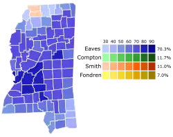 County resultsBarbour: 50–60% 60–70% 70–80%Eaves: 50–60% 60–70% 70–80%