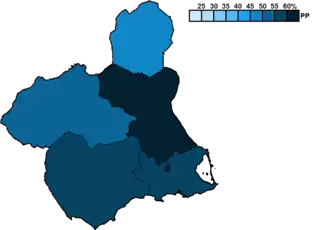 ![]() Constituency results map for the Regional Assembly of Murcia | |||||||||||||||||||||||||||||||||||||||||||||||||