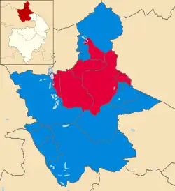 All 35 seats from all wards were up for election, with 18 seats needed for an overall majority. The Conservatives won 21 seats, with Labour winning the remaining 14. The Liberal Democrats lost all four of their seats.[2][3][4][5]