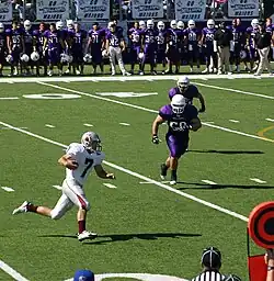 - With Millsaps lineman Younger (#90) closing in, Maddux (#25) attempted a backwards pass that was nearly batted down by Younger (#90), but bounced off the turf near the Majors' 35 and into the hands of Curry (#7), who took the ball in stride in the middle of the field, picked up a block, and raced past the last Millsaps defender for the score and the win.[7]