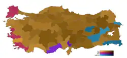 General elections were held in Turkey on 22 July 2007 to elect 550 members to the Grand National Assembly. Originally scheduled for November, the elections were brought forward after parliament failed to elect a new president to replace Ahmet Necdet Sezer. The result was a resounding victory for the incumbent Justice and Development Party (AKP), which won 46.6% of the vote and 341 seats. The party's leader Recep Tayyip Erdoğan was consequently re-elected as Prime Minister of Turkey. The opposition Republican People's Party (CHP) came second with 20.9% of the vote and took 112 seats. The Nationalist Movement Party (MHP), which had failed to surpass the 10% election threshold in the 2002 election, re-entered parliament with 14.3% of the vote and 71 MPs.[1] The election was fought mostly on Turkey's debate over laïcité that had been perceived to be under threat from the AKP's nomination of Foreign Minister Abdullah Gül, an Islamist politician, for the Presidency. Developments in Iraq (explained under positions on terrorism and security), secular and religious concerns, the intervention of the military in political issues, European Union membership negotiations, the United States and the Muslim world were other main issues.