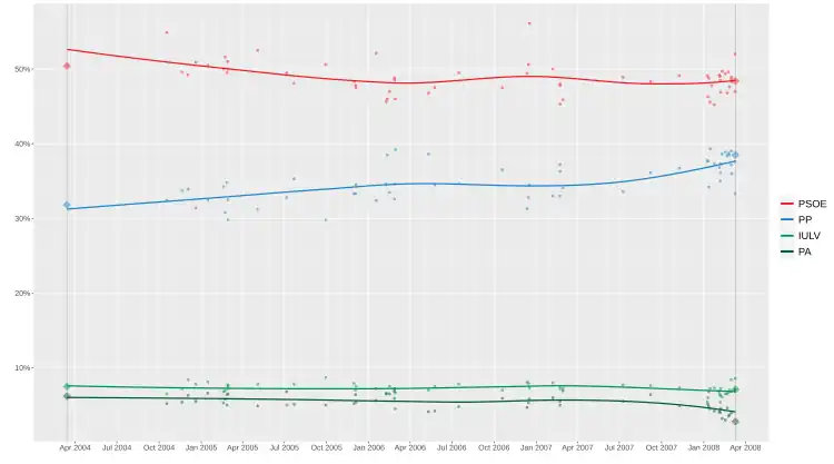 - ^ "Un sondeo del PA da también la mayoría absoluta a los socialistas". El País (in Spanish). 16 September 2007.
