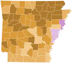 Clinton carried every county in Arkansas by nearly two-to-one margins with the exception of three counties won by Obama: Crittenden, which contains West Memphis and is a part of the Memphis Metropolitan Area; and Lee and Phillips counties, both predominantly African American and located along the Mississippi River Delta.