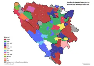 - ^ "B92 - News - SNSD, SDA win in Bosnian local vote". Archived from the original on 7 June 2011. Retrieved 6 October 2008.