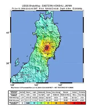 - ^ a b "Magnitude 6.9 – EASTERN HONSHU, JAPAN". United States Geological Survey. 2008-06-14. Archived from the original on 22 September 2008. Retrieved 2008-06-18.