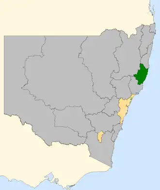 ![]() Lyne (green) within New South Wales | ||||||||||||||||||||||||||||