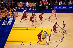The 2008 Pacific Life Pacific-10 Conference men's basketball tournament was held between March 12 and March 15, 2008, at Staples Center in Los Angeles. All ten schools in the conference qualified for the tournament. Number one seed UCLA defeated number two seed Stanford 67–64 to win the conference tournament. It was the first time since 2005 that the top two seeded teams were in the final game. UCLA was the regular season champion. A record crowd of 18,997 (Staples Center capacity for Basketball) was on hand to watch UCLA defeat USC 57–54 in the semi-finals.[2] On January 3, 2010, USC Athletic Director Mike Garrett announced that the school was to vacate the 2007–08 season's victories for NCAA violations by the basketball team.[3]